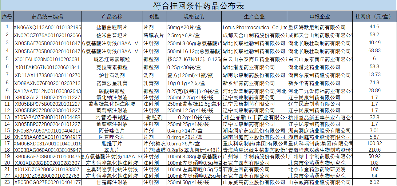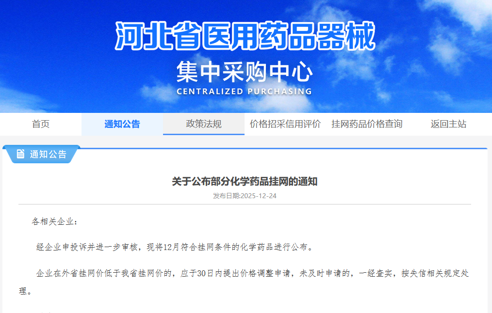 (含目录)12月25日 河北省公布12月化学药品挂网名单!
