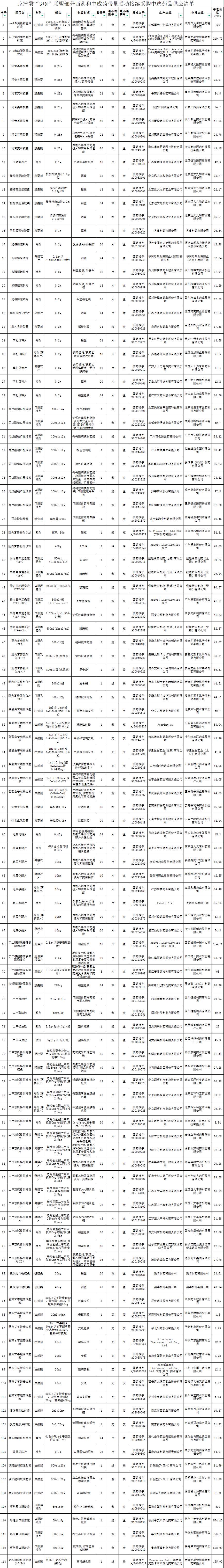 附件:京津冀“3+N”联盟部分西药和中成药带量联动接续采购中选药品供应清单.xls