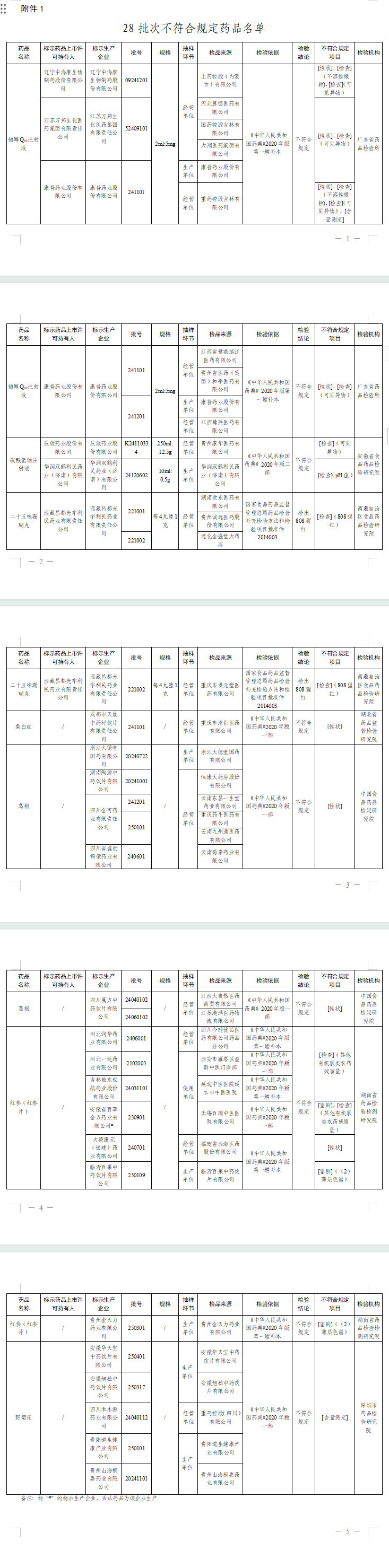 经广东省药品检验所等7家药品检验机构检验,有24家企业生产的28批次药品不符合规定。现将相关情况通告如下: