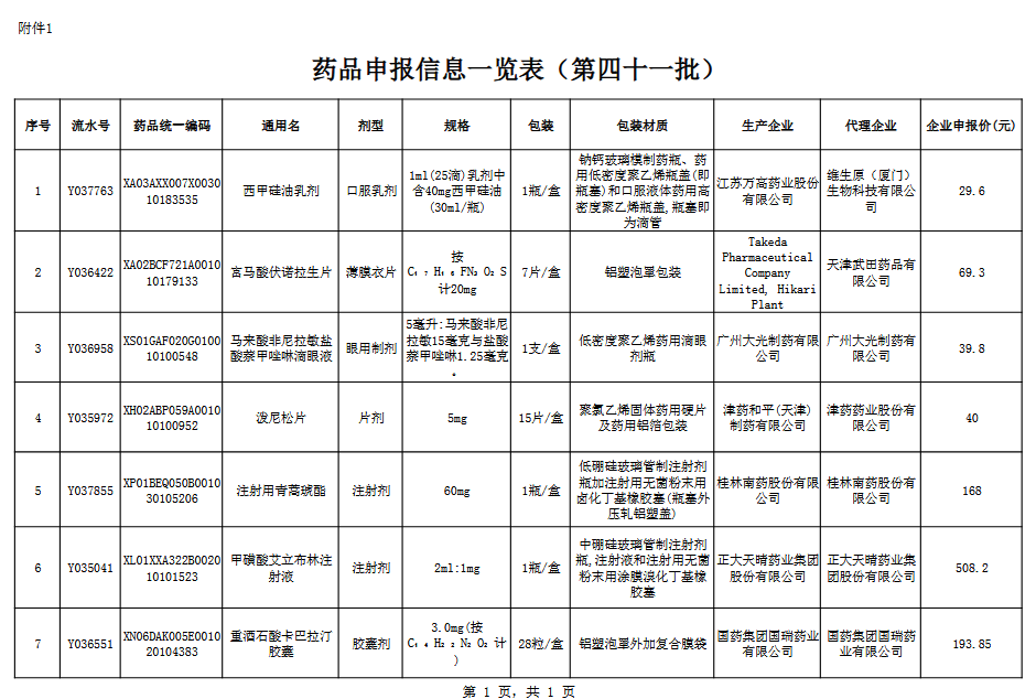 附件:1.药品申报信息一览表(第四十一批).pdf