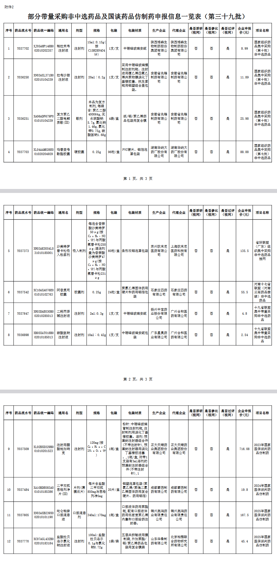 附件:2.部分带量采购非中选药品及国谈药品仿制药申报信息一览表(第三十九批).pdf